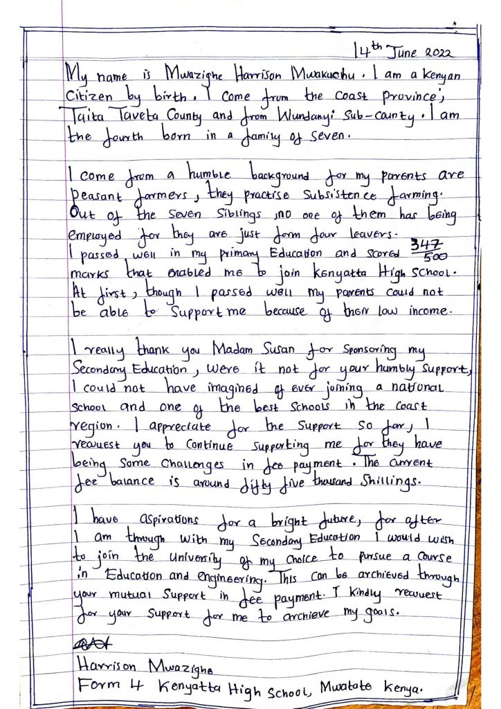 Access to education is a basic need to the Kenyan child. However, this is usually hard to achieve due to challenges encountered in education financing. This is especially the case when it comes to accessing secondary education. Harrison Mwakuchu, a bright child of a humble background was facing challenges after being admitted to Kenyatta high school being a national school. The boy was in and out of school due to fees arrears as his parents could not manage to pay the full amount, given that they were low income earners.